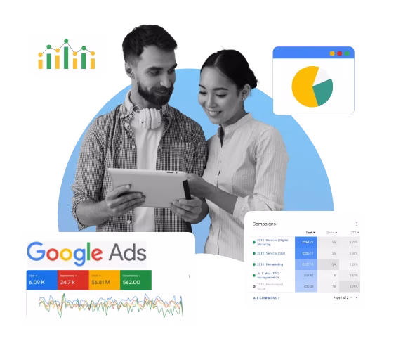 Maximiza tu visibilidad en el buscador más utilizado del mundo. Creamos y gestionamos campañas de Google Ads altamente efectivas que te conectan con clientes potenciales en el momento preciso en que buscan tus productos o servicios.